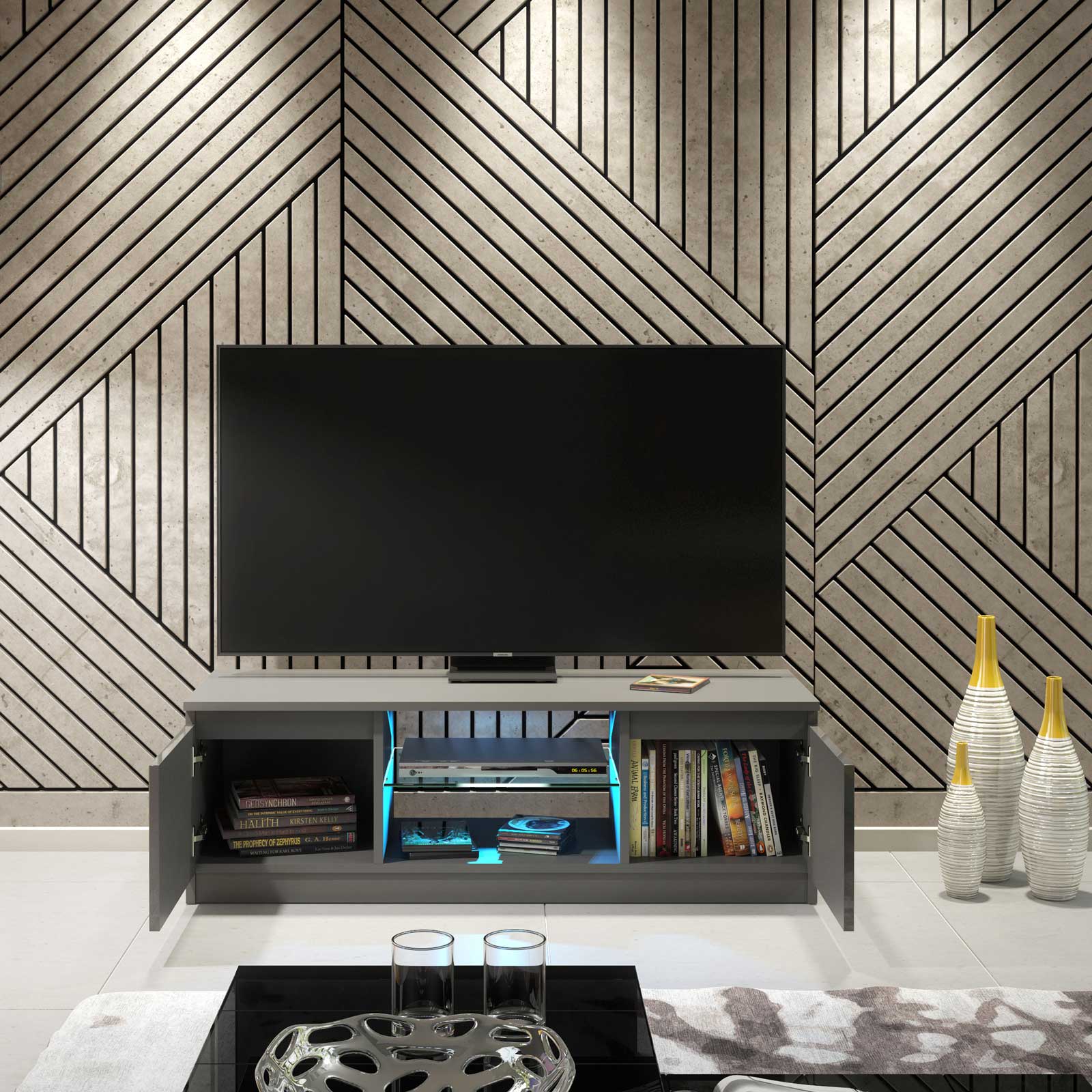 Modern Grey TV Unit with High Gloss Doors & Free LED – 130cm Cabinet