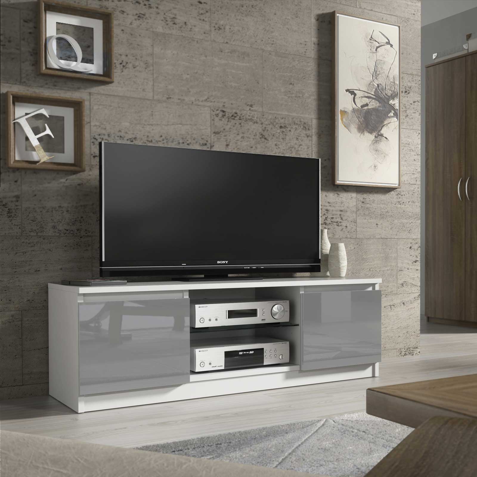 Modern White TV Unit with Grey Gloss Doors – 130cm Media Cabinet