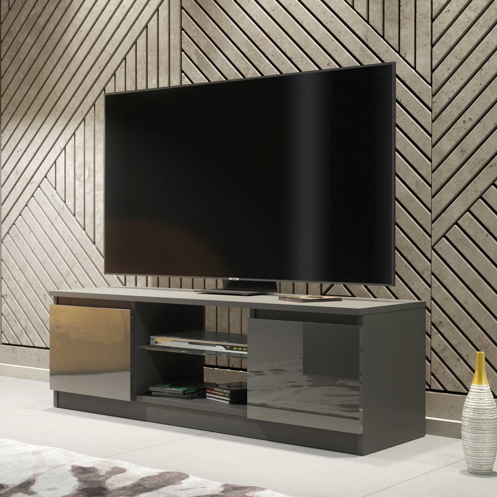 Modern Grey TV Unit with Gloss Doors – 130cm Media Cabinet
