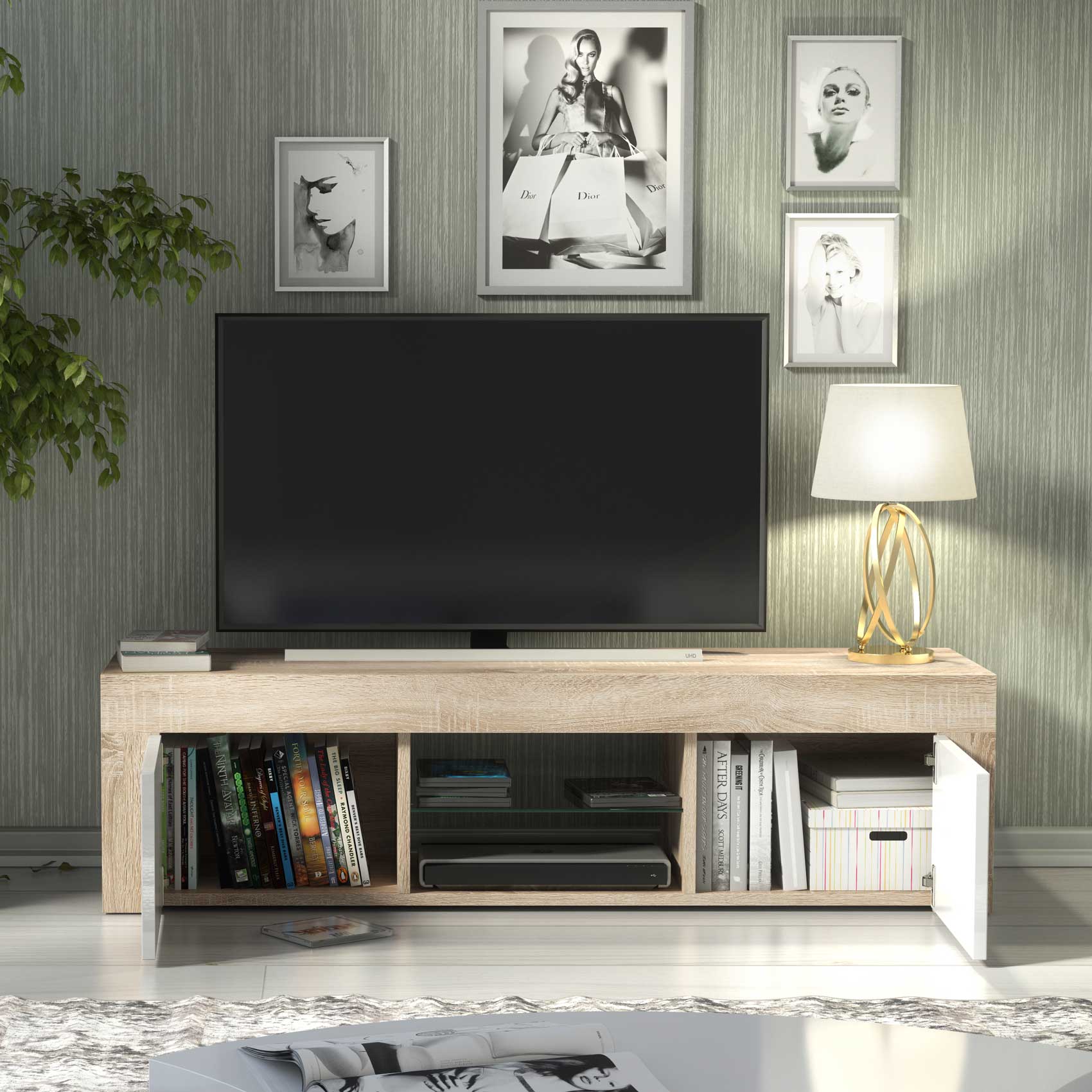 Modern Oak & White TV Unit with Gloss Doors – 145cm Media Cabinet for Contemporary Living Spaces