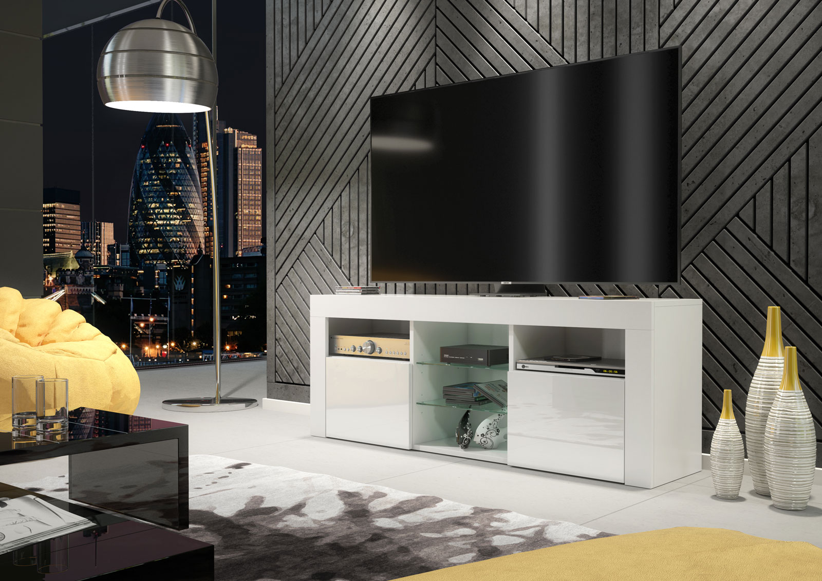 Elevate the look of your living room with this stunning white TV unit, designed to bring brightness, elegance, and function to your entertainment space. Featuring a white matt body combined with white high gloss doors, this sleek media cabinet fits effortlessly into any modern or minimalist interior, adding a clean and polished finish.