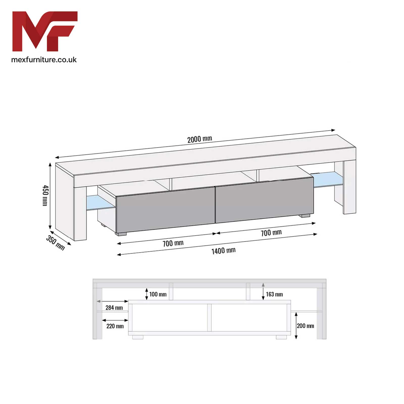 Crafted from 16 mm MDF/chipboard – sturdy and durable build