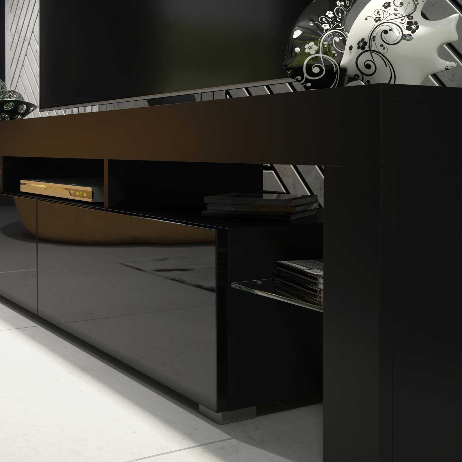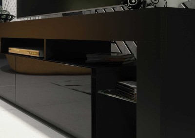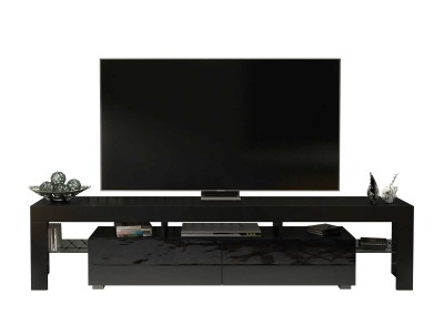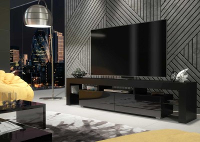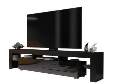 Add bold sophistication to your living room with this modern black TV unit featuring a sleek 200 cm design that merges functionality with contemporary aesthetics. Built from high-quality 16 mm MDF/chipboard, this TV stand offers a durable and long-lasting solution for stylish home entertainment. The matt black body pairs elegantly with the black gloss doors, delivering a dramatic, eye-catching contrast ideal for modern interiors.