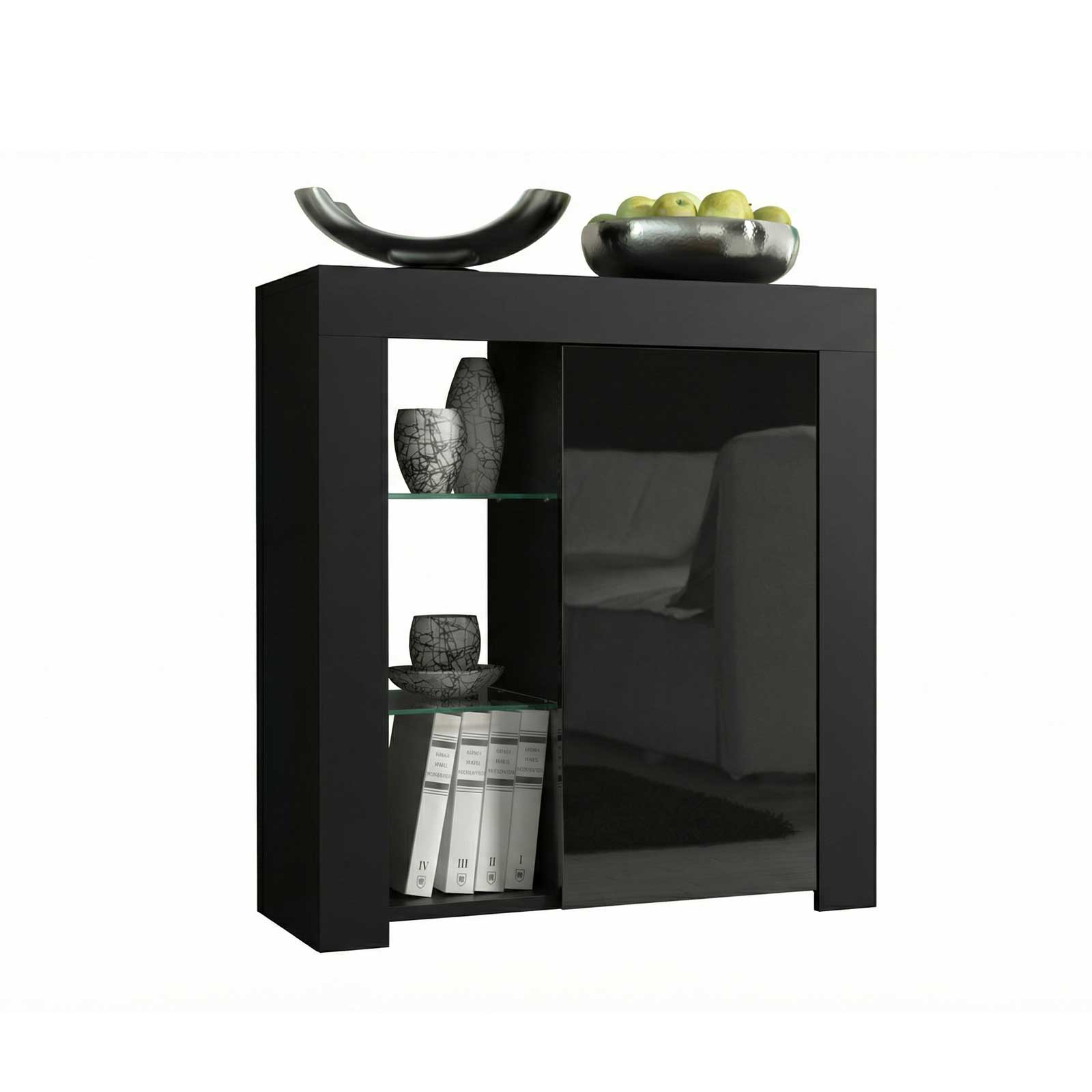 Add bold sophistication to your interior with this black high gloss sideboard 75cm, designed to combine modern style with compact, practical storage. Featuring a black matt body paired with a sleek black high gloss door, this contemporary storage cabinet creates a striking monochrome look perfect for modern, minimalist and industrial interiors.