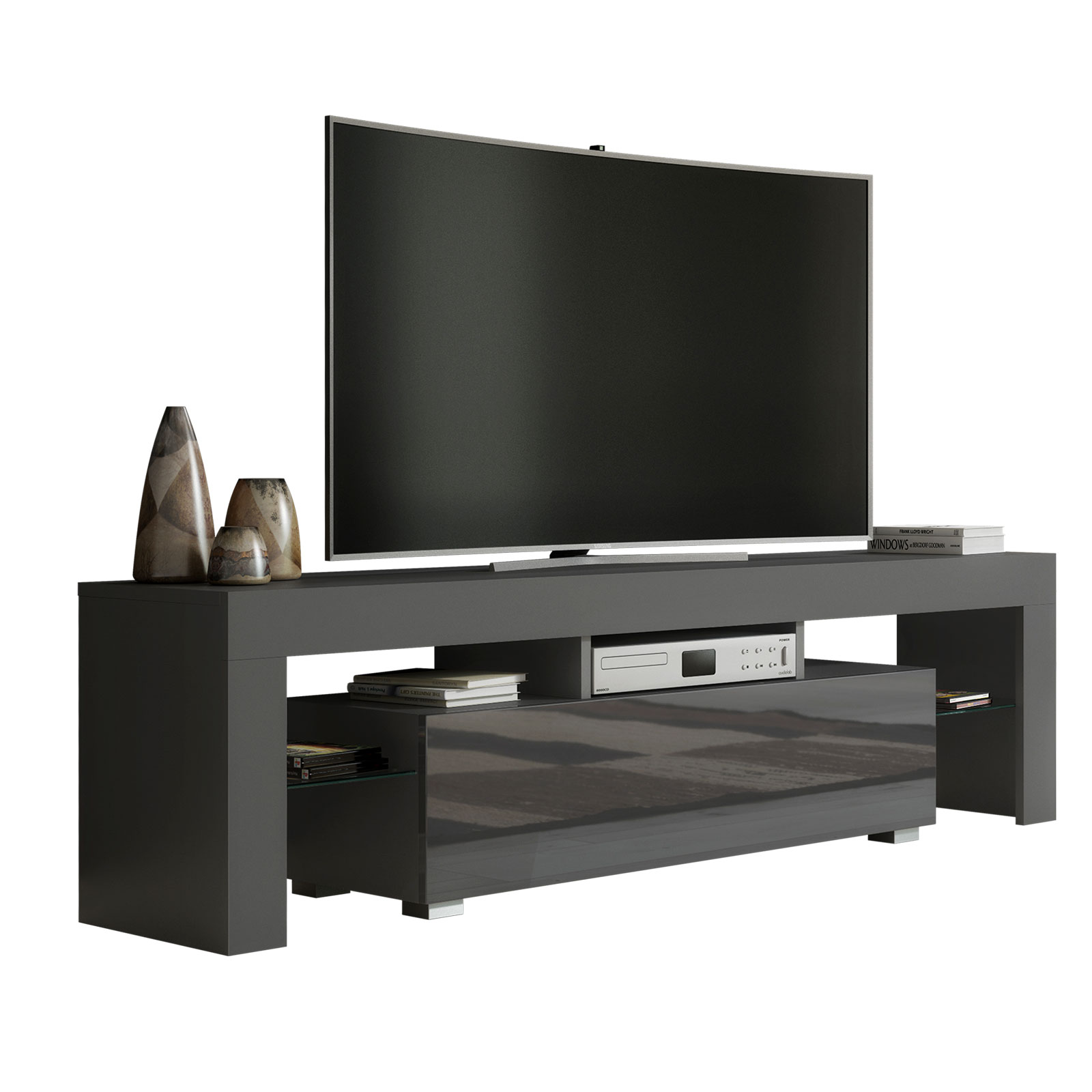 Elevate your living room setup with this modern grey gloss TV cabinet – a sleek, practical, and stylish solution for every contemporary home.