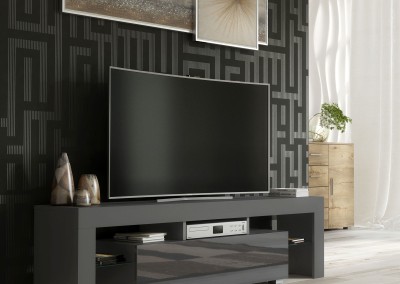 Add a refined modern touch to your home with this elegant grey TV cabinet, expertly crafted to deliver both functionality and sophisticated style. Featuring a grey matt body paired with a high gloss grey front, this 160 cm TV stand is designed for today’s living spaces, offering a minimalist form with ample storage potential.
