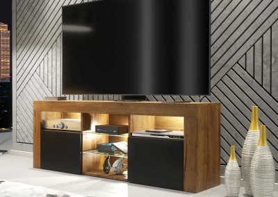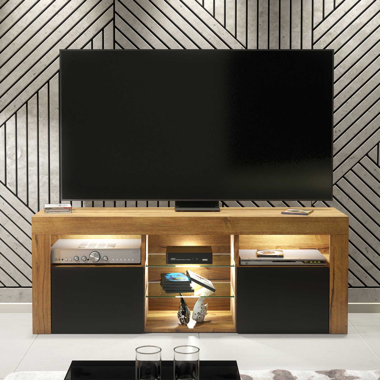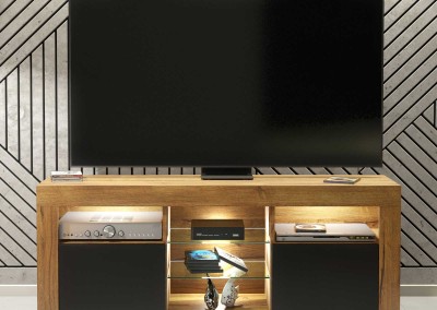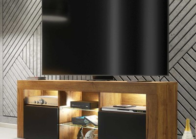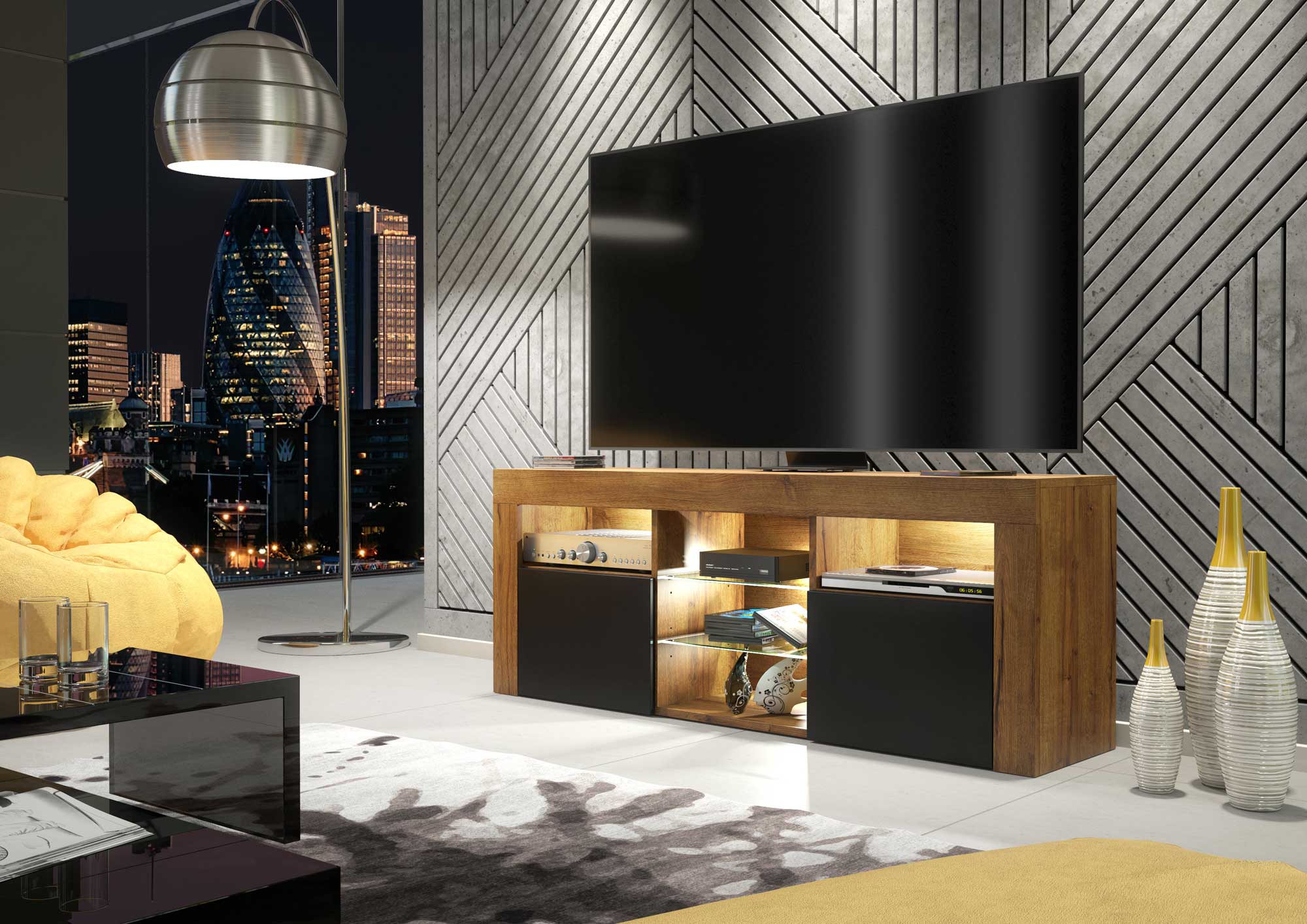 Upgrade your living room with this modern oak and black TV unit 145cm, designed to combine natural warmth with bold contemporary styling. Featuring a natural oak matt body paired with sleek black matt doors, this media cabinet delivers a strong two-tone contrast that perfectly suits modern, industrial and minimalist interiors.