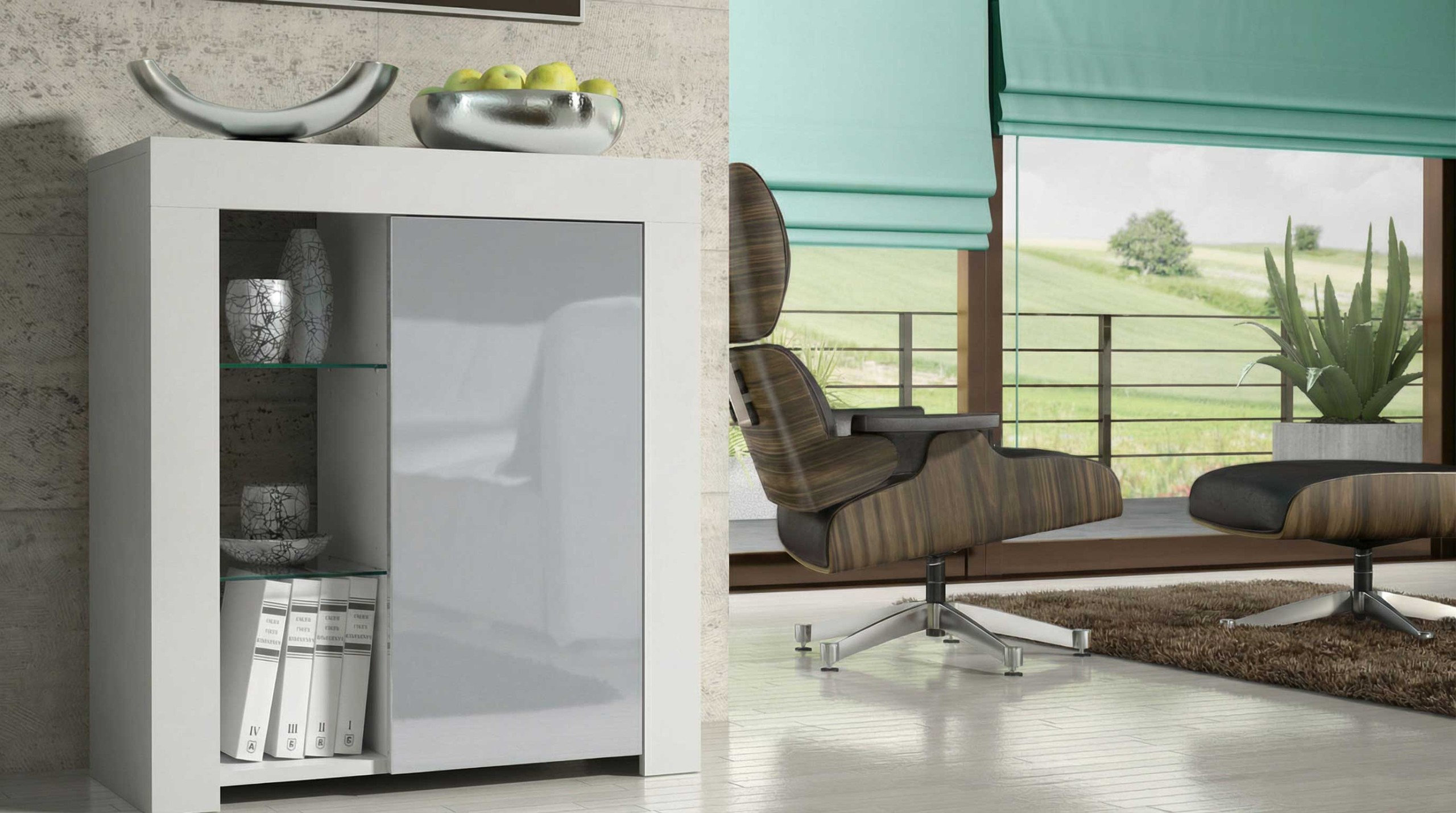 Upgrade your interior with this modern white and grey gloss sideboard 75cm, designed to combine compact storage with contemporary styling. Featuring a white matt body paired with a sleek grey high gloss door, this modern storage cabinet delivers a clean, minimalist look perfect for living rooms, hallways, bedrooms and small apartments.