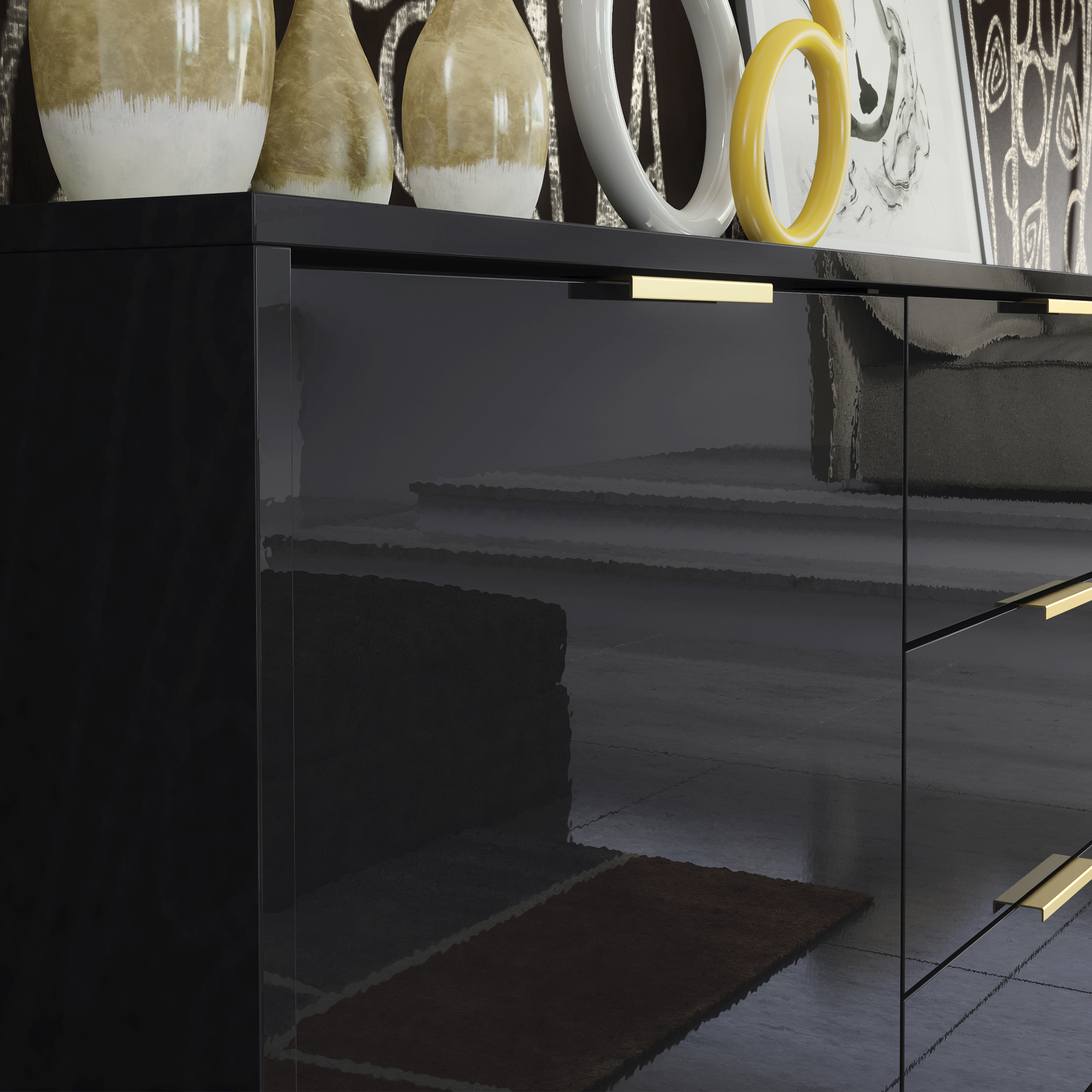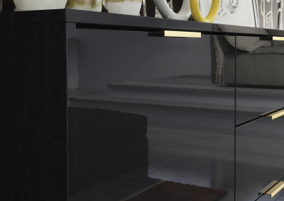 Choose bold luxury for your home. This black gloss sideboard with gold accents from Mex Furniture blends storage, elegance, and sophistication into one timeless piece. Order now and bring stunning contrast and function to your interior.