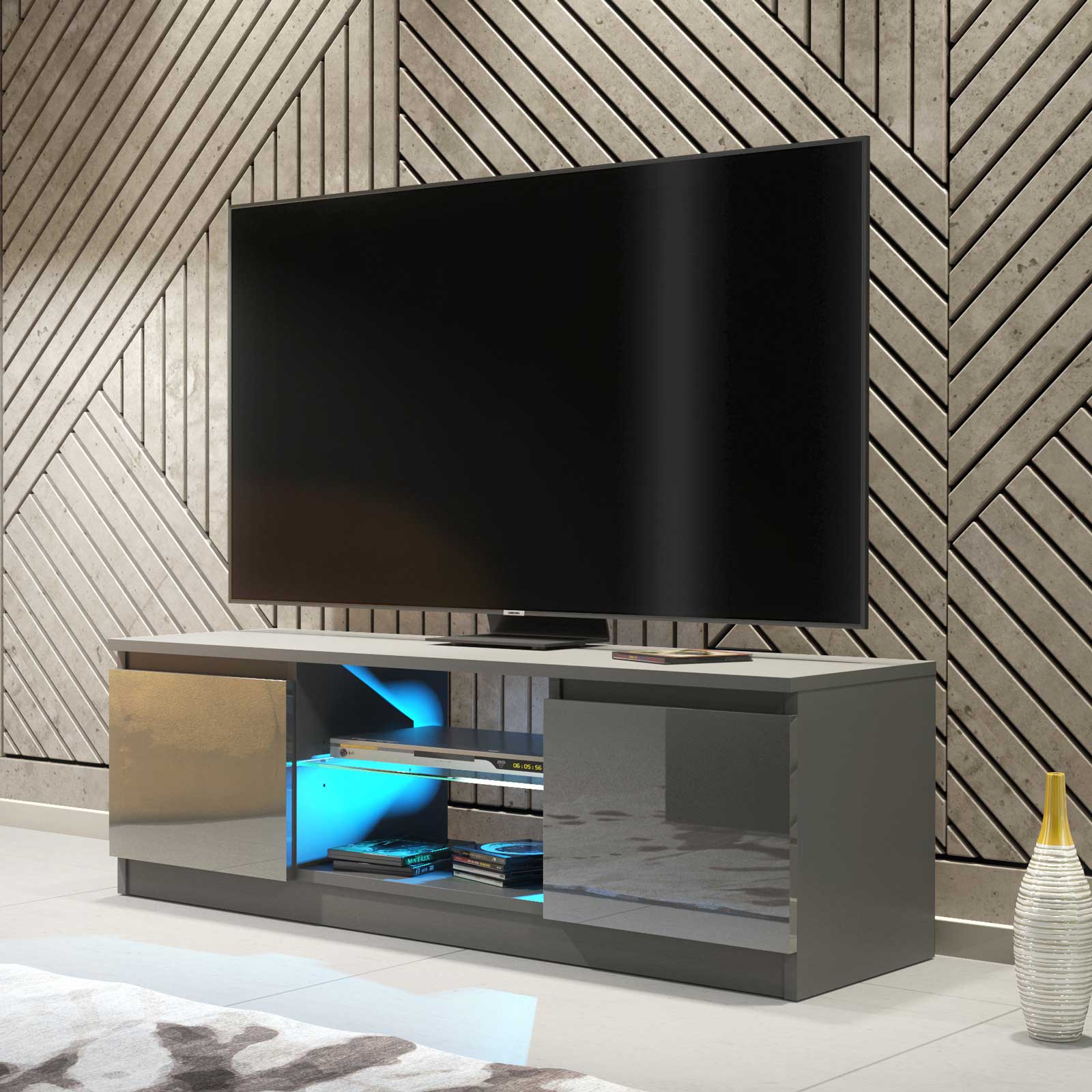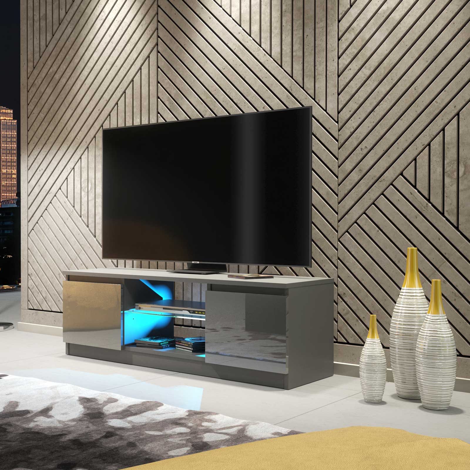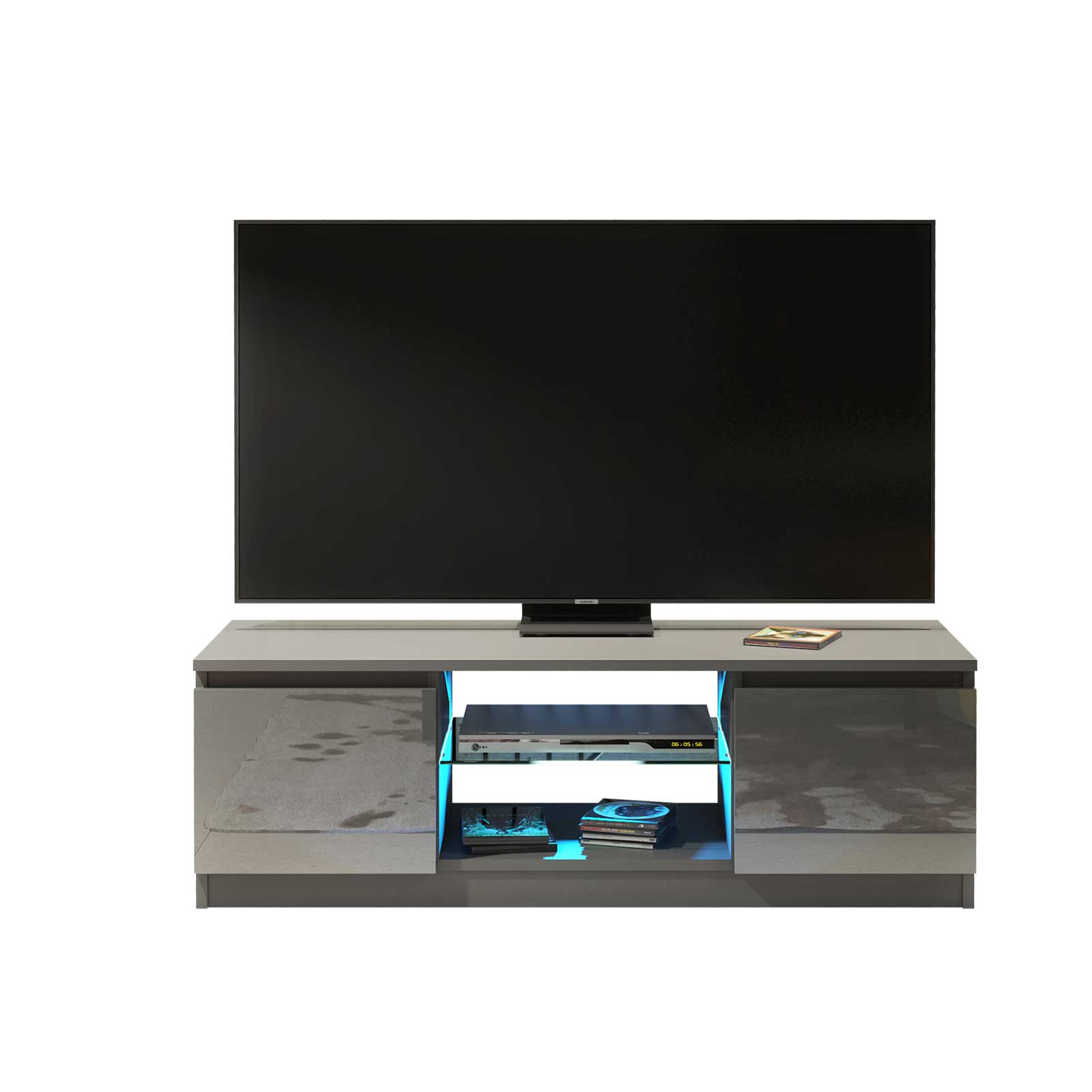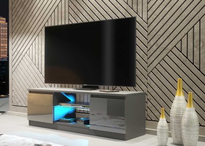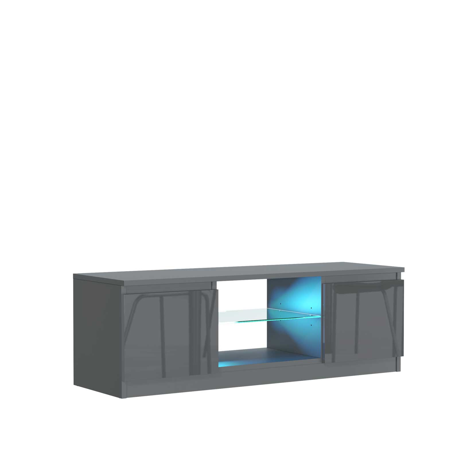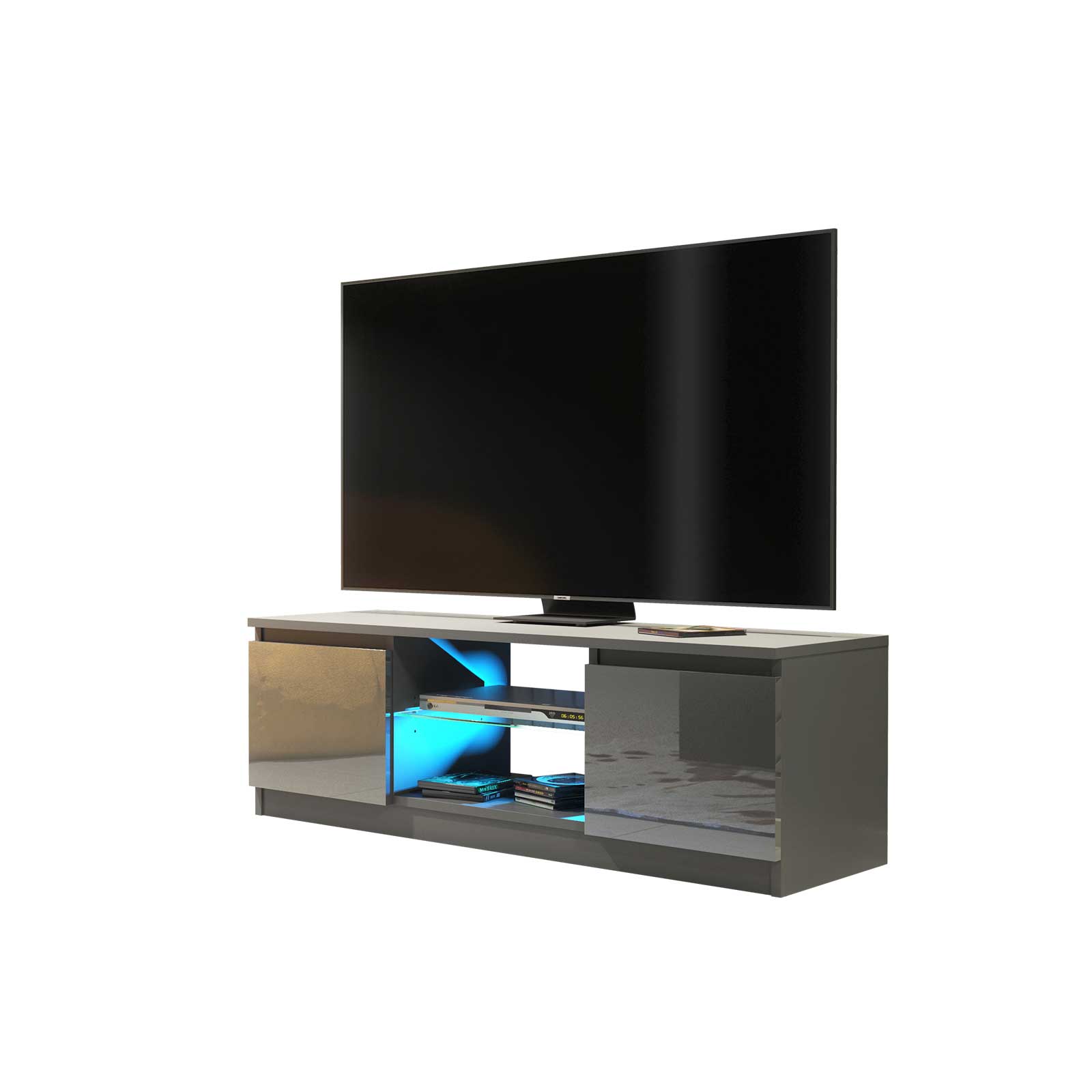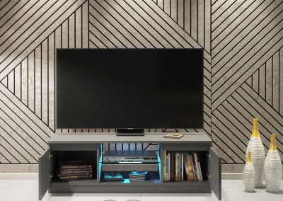 Choose this elegant grey gloss TV unit with free LED lighting to elevate your entertainment setup – a perfect fusion of functionality, modern design, and ambient style.
