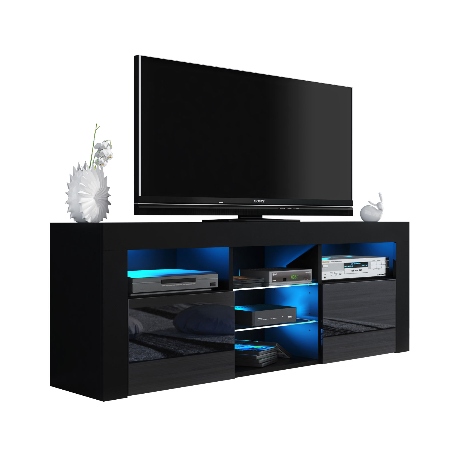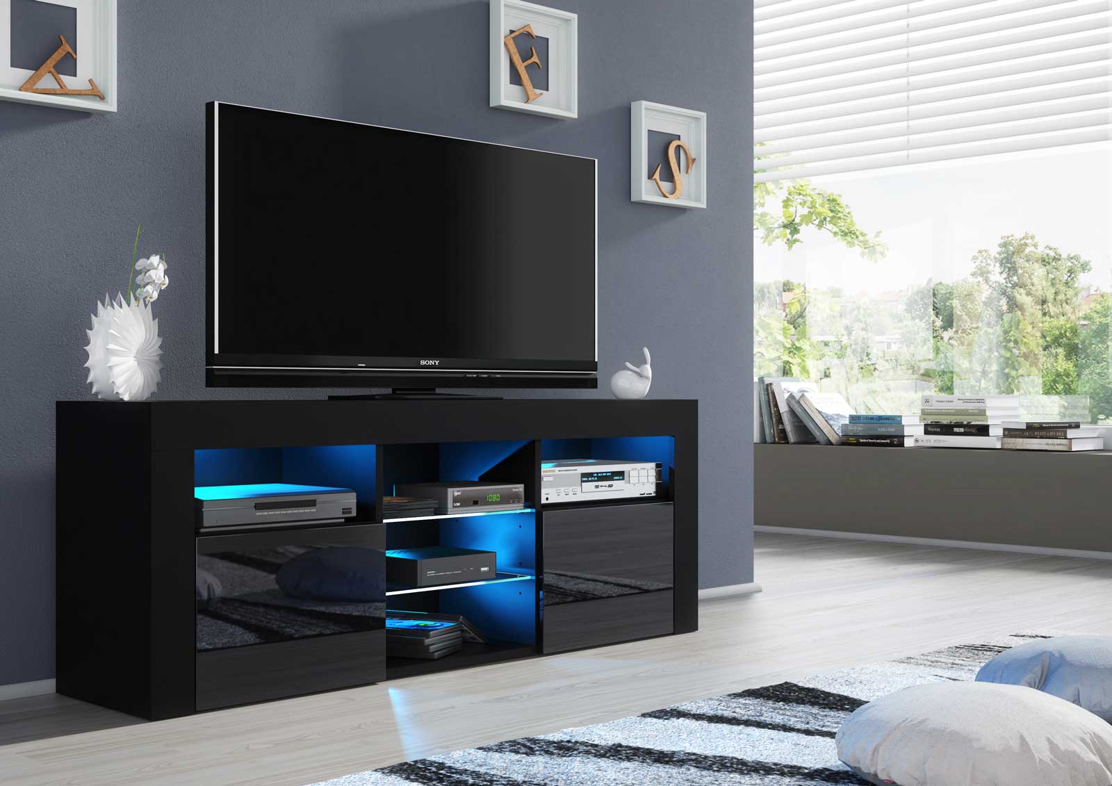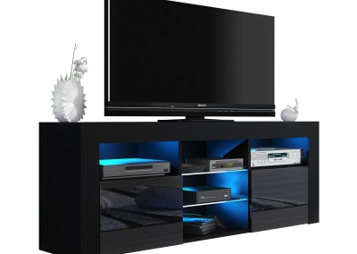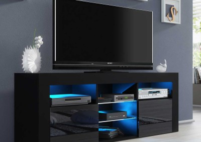 Bring a bold and contemporary statement to your living room with this striking TV unit, featuring a sleek black matt body paired with luxurious black high gloss doors. Designed for modern interiors, this 145 cm wide media cabinet is the ideal choice for anyone seeking both functionality and a stylish focal point in their home. The high-quality finish adds a sophisticated tone, while the clean silhouette makes it perfect for minimalist and elegant spaces alike.