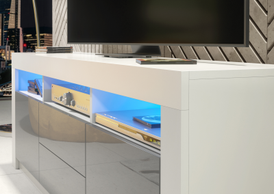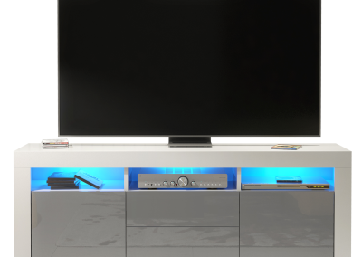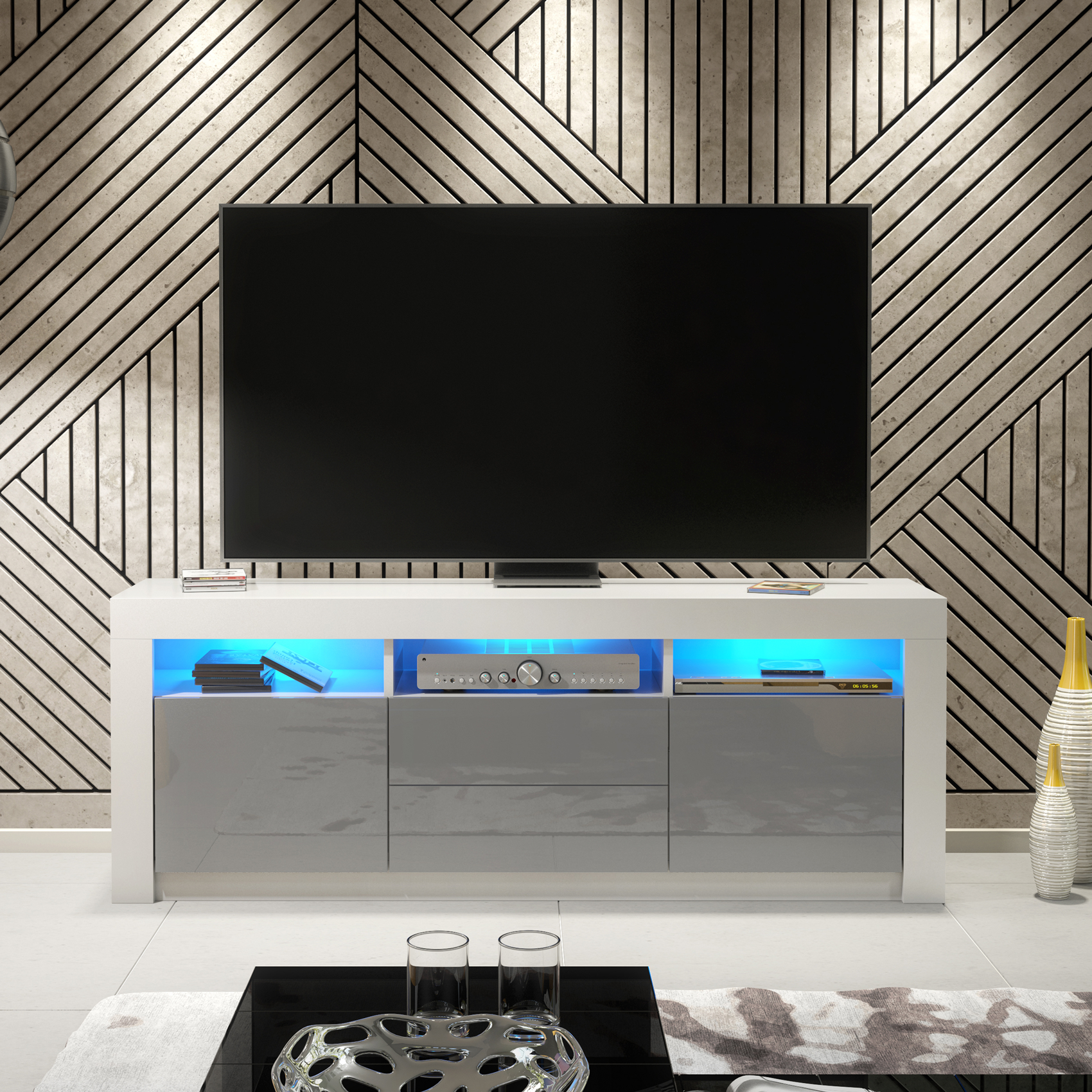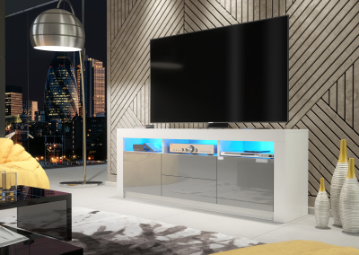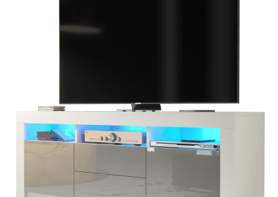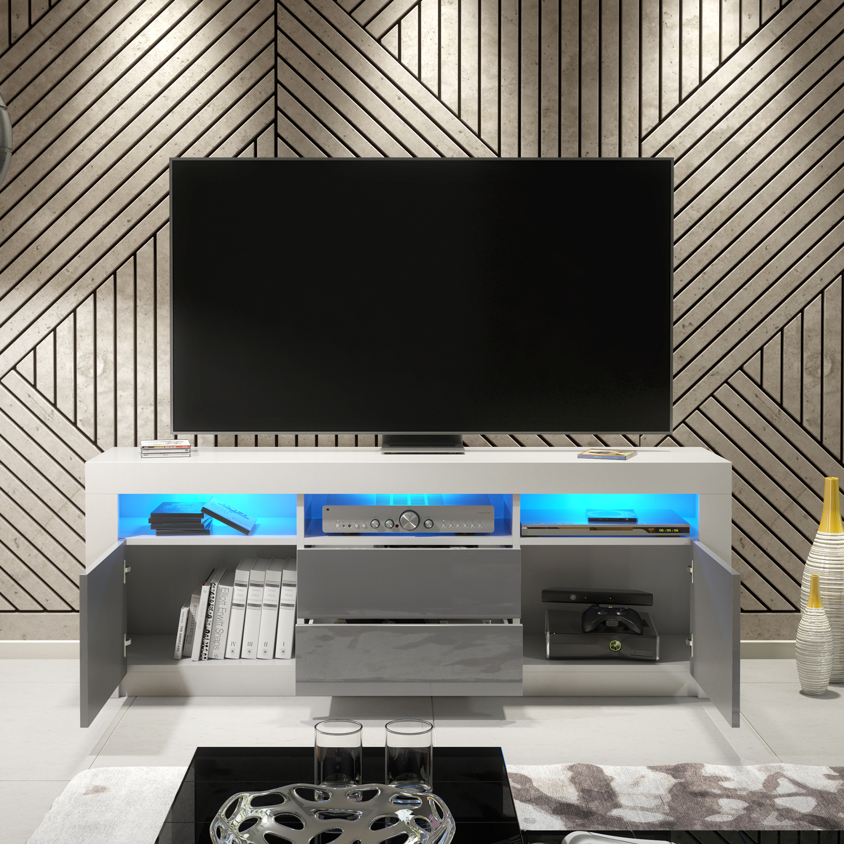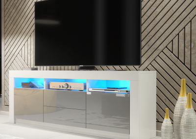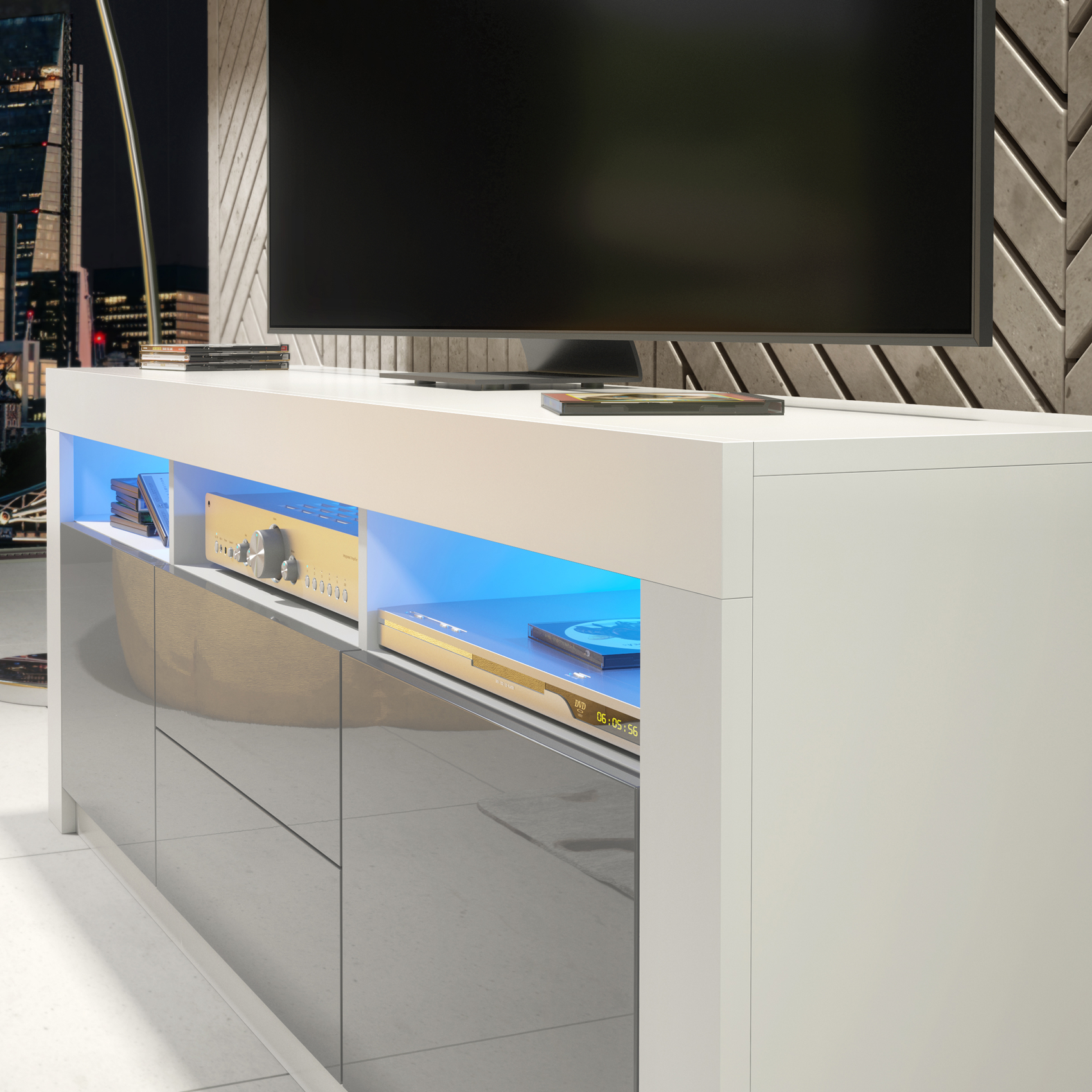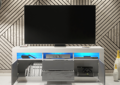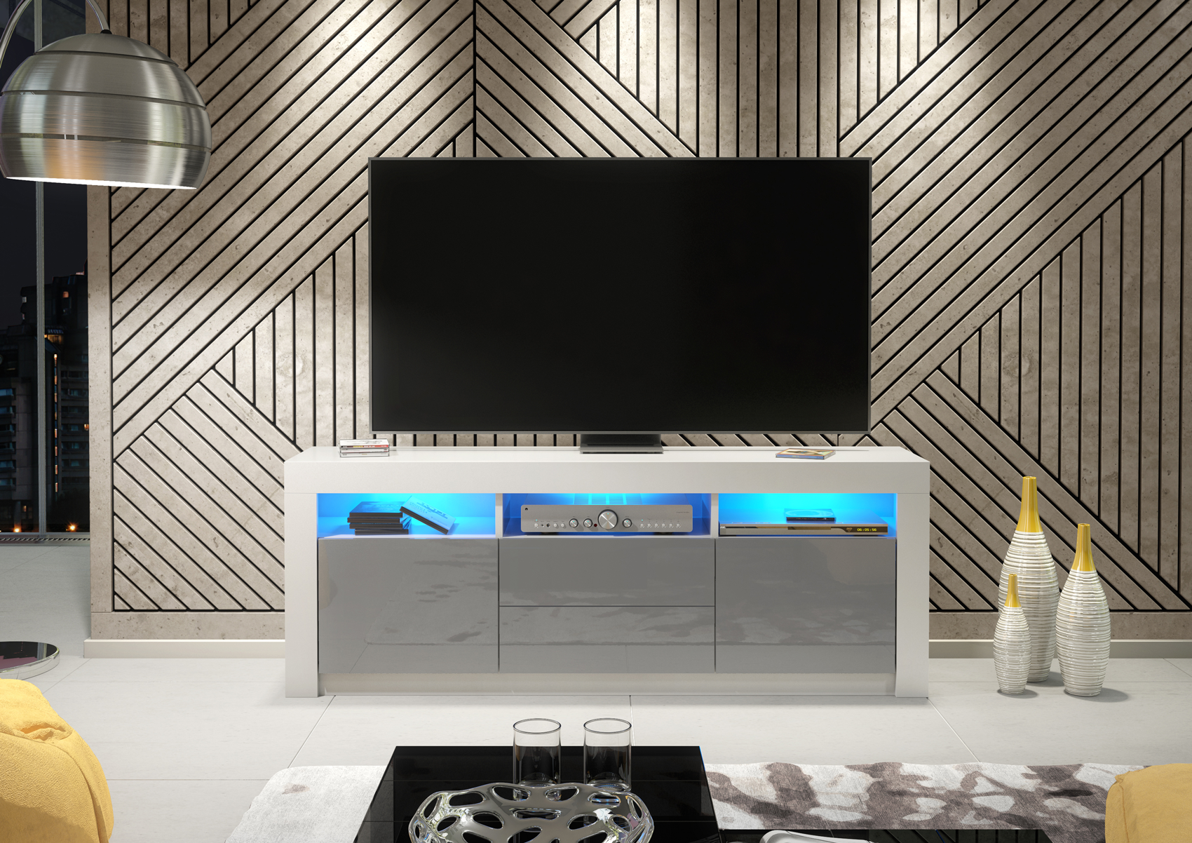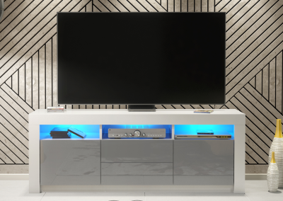 Bring a sleek, modern flair to your living space with this 160 cm white and grey TV unit, designed to be both functional and stylish. The clean white matt body paired with high gloss grey drawer and door fronts creates a sophisticated two-tone look, perfect for contemporary interiors.