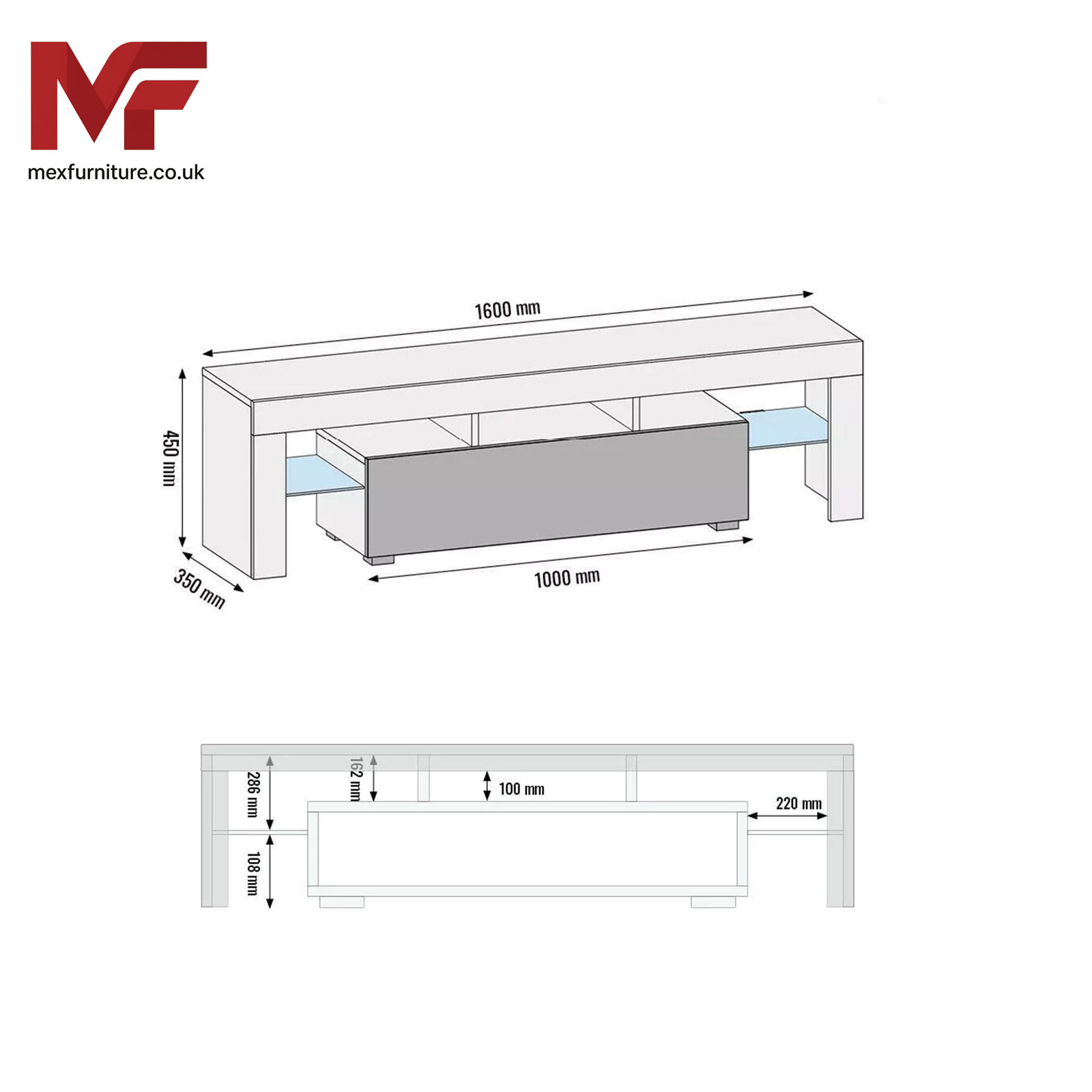 Made from sturdy 16 mm MDF/chipboard
