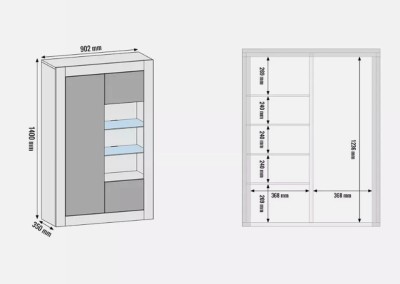Behind the three handleless doors, you’ll find spacious concealed compartments, while the two central glass shelves offer the perfect display area for glassware, ornaments, books, or decorative accessories.
