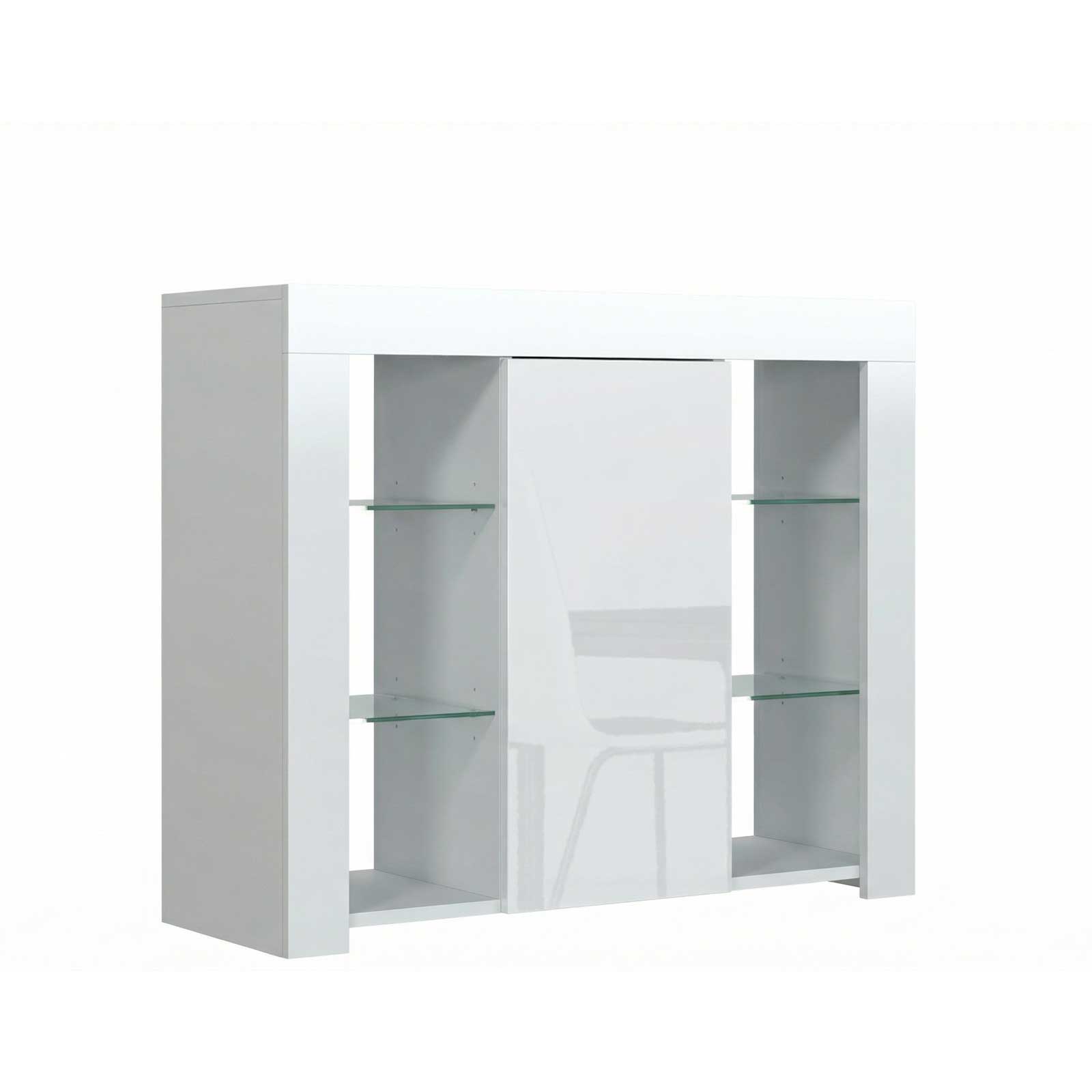 White Gloss Sideboard 97cm Modern Storage Cabinet with Door & Shelves