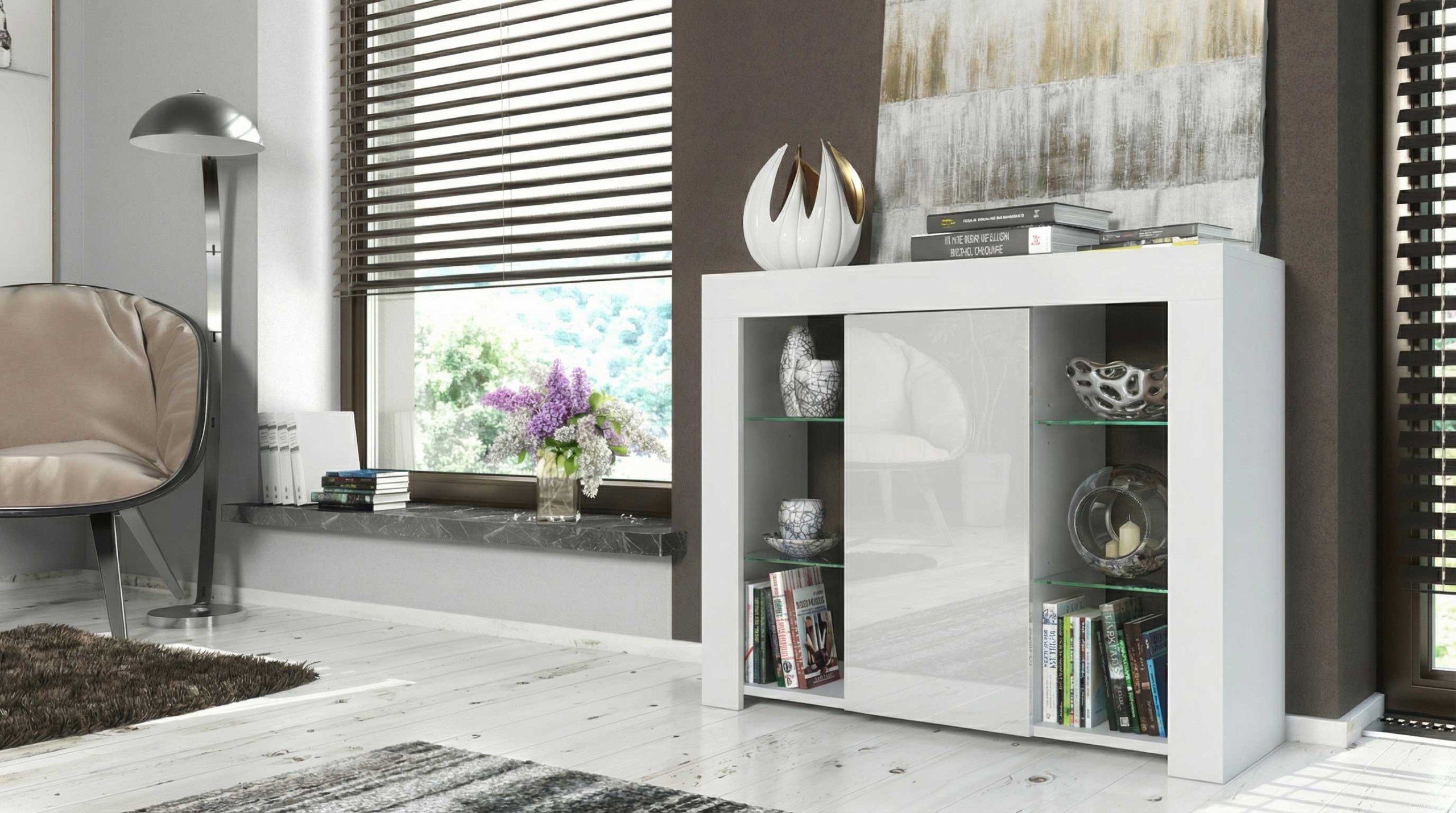 Upgrade your home with this white gloss sideboard cabinet, a modern storage unit designed for stylish and organised interiors. Measuring 97cm wide, this contemporary sideboard is ideal for living rooms, dining rooms, hallways and modern apartments looking for practical storage with a clean, minimalist finish.