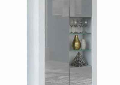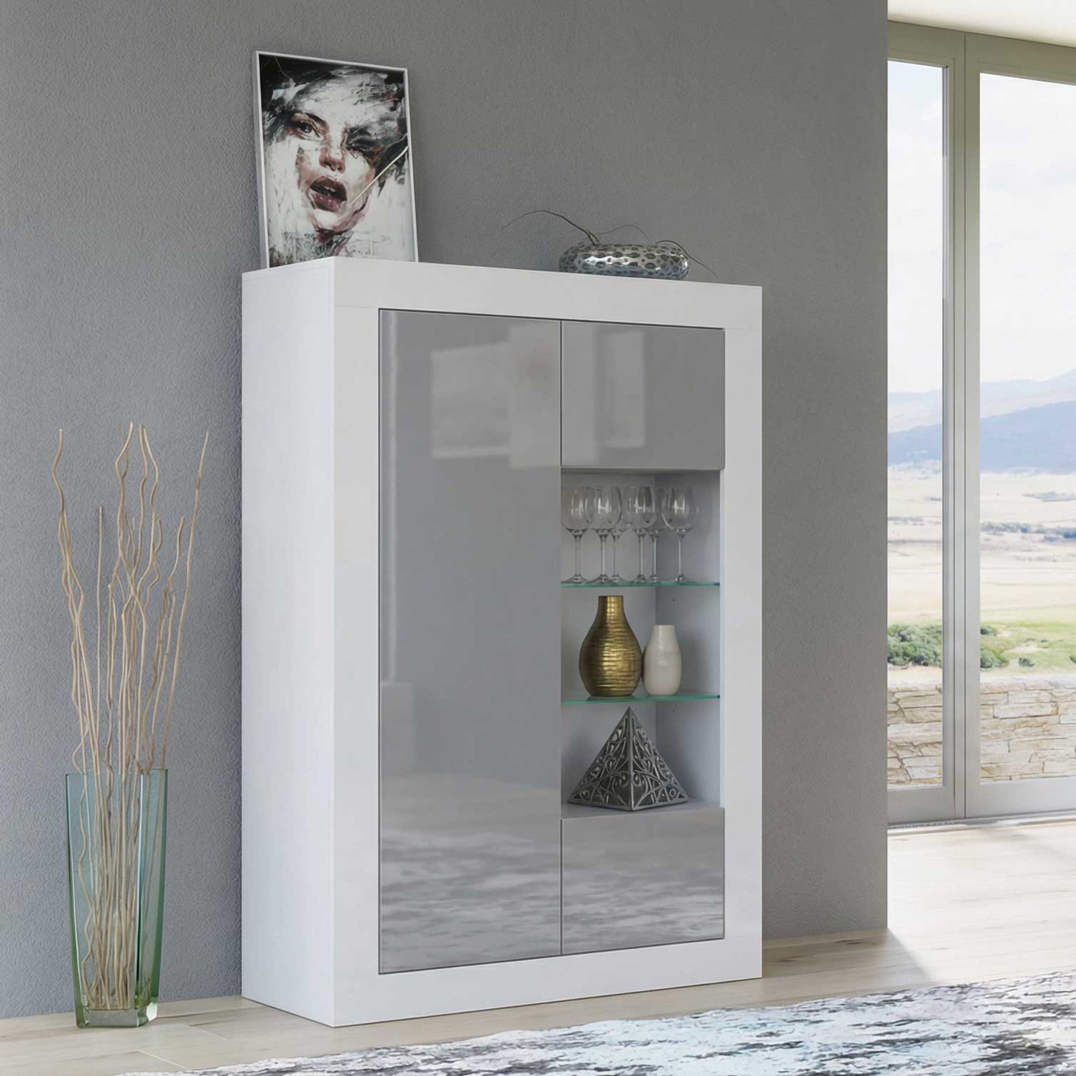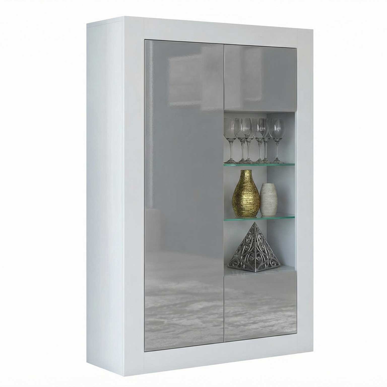 Upgrade your home with this modern white and grey gloss display cabinet, designed for stylish interiors that demand both elegance and practical storage. Measuring 93cm wide and 140cm tall, this contemporary unit is perfect for living rooms, dining rooms, hallways or apartments where space-saving furniture is essential.