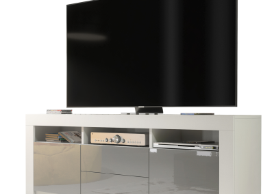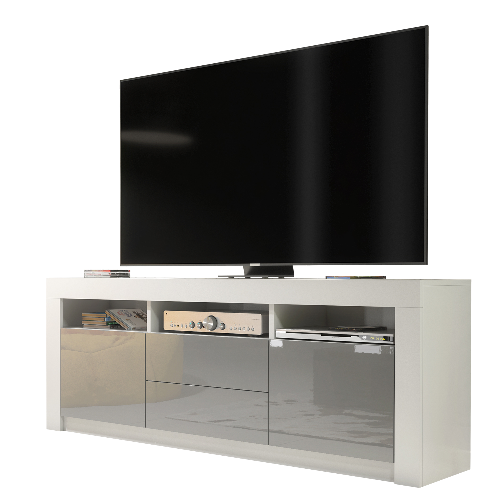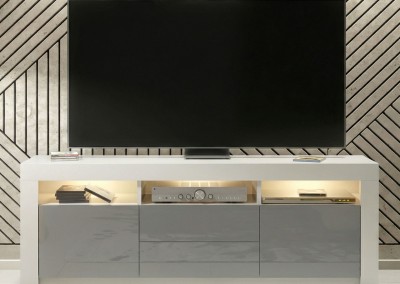 Bring a sleek, modern flair to your living space with this 160 cm white and grey TV unit, designed to be both functional and stylish. The clean white matt body paired with high gloss grey drawer and door fronts creates a sophisticated two-tone look, perfect for contemporary interiors.